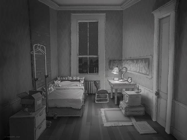 Początkowy zamysł mieszkanka karotki. Pretty cozzy, right? Um... Nope. W zasadzie trochę podobne do mojego pokoju, tylko ściany inne...